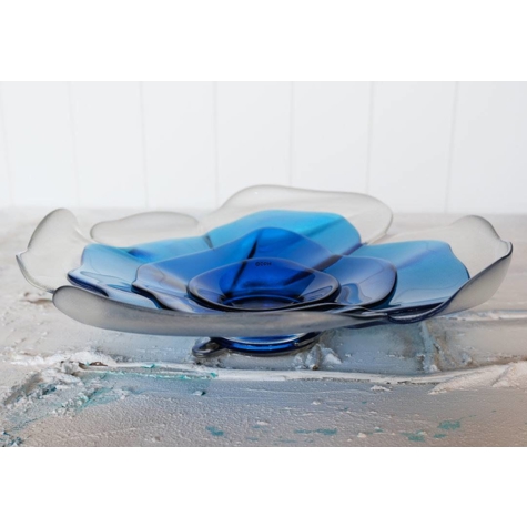 Teknik: Glas-kunst Motiv: Formet som en blå blomst.