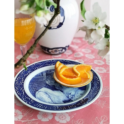 Rørstrand mors dags platte 1979 med motiv fra Carl Larssons akvarel malet i 1885 med titlen "Atelier idyl". Motivet viser Carl Larssons kone Karin og deres datter Suzanne.