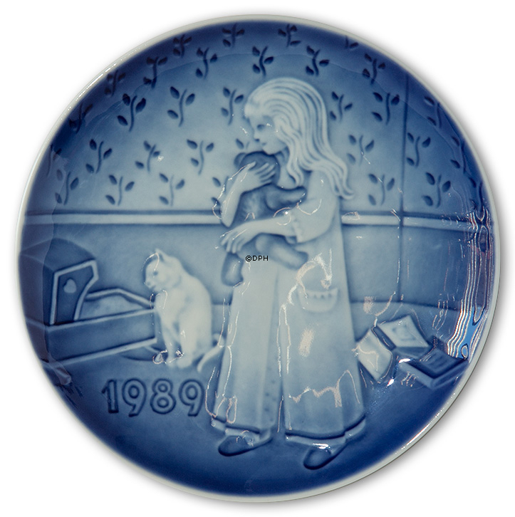 Bing & Grøndahl Barnets dag platte 1989, udført i underglasur. Titlen på denne Bing & Grøndahl barnets dag platte er Sengetid.