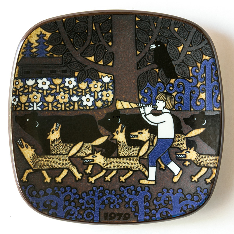 Samleartikler: Arabia Årsplatter Motiv: Fra myten om Kalevala Teknik: Stentøj Udgivelsesår: 1979 Designer: Raija Uosikkinon Diameter: 7,5" - 20 cm