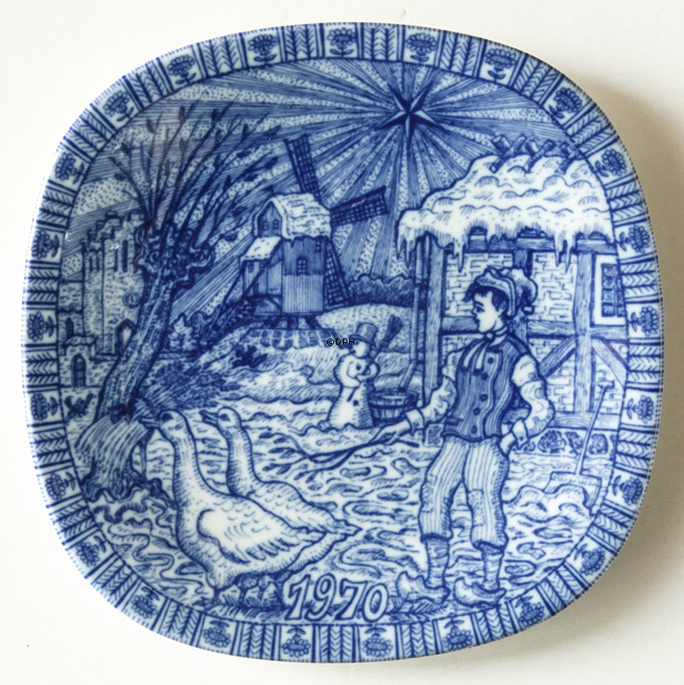 Rørstrand juleplatte 1970 med motiv af Nils og hans gæs.