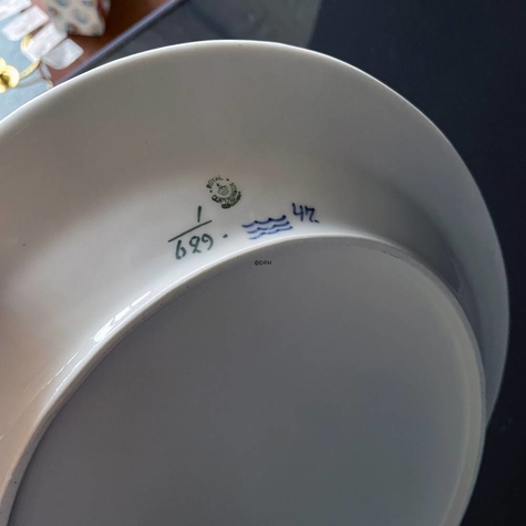 Musselmalet halvblonde oval fad 44 cm, Royal Copenhagen nr. 629