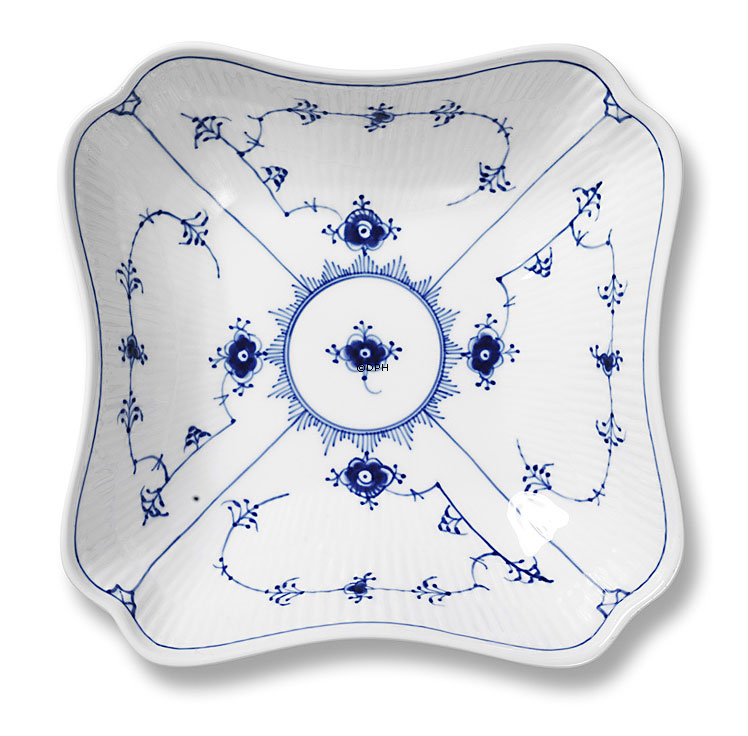 Musselmalet, riflet firkantet salatskål nr. 1/26 eller 578, indhold 80 cl., Royal Copenhagen 22cm