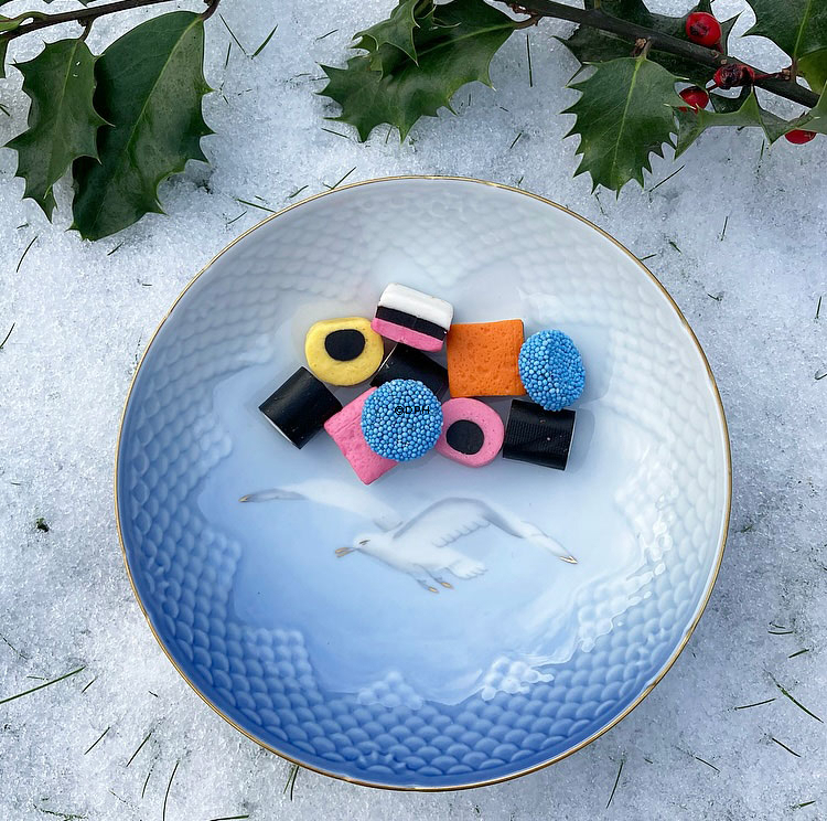 Mågestellet m/guld. Designet af Fanny Garde i 1892 for Bing & Grøndahl. Kageskål nr. 428 eller 223