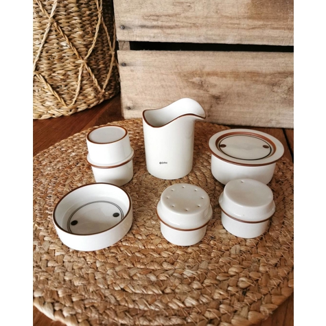 Domino er et tidløst stel, der sætter funktionen i højsædet - uden at gå på kompromis med hverken enkelhed eller ele- gance. Stellet er fremstillet i porcelæn og designet af Anne Marie Trolle