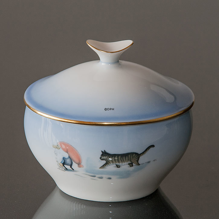 Wiberg Juleservice, sukkerskål med nisse og kat nr. 3503302