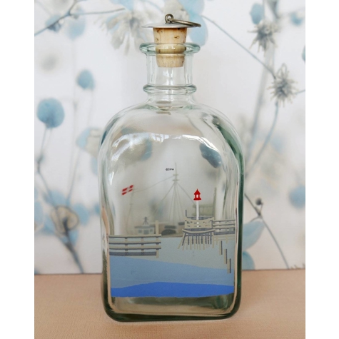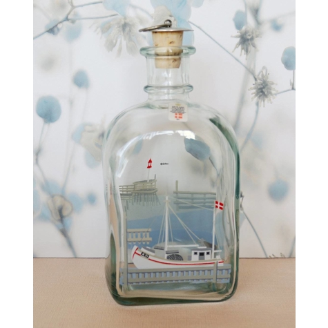 Holmegaard Sommerflaske med Fiskekutter i havnemiljø