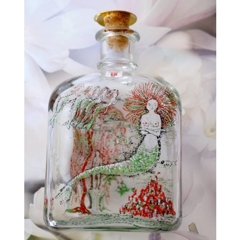 Holmegaard H.C. Andersen brændevinsflaske eller snapseflaske med motiv fra eventyret om Den Lille Havfrue. Flasken er designet af Michael Bang og produceret fra 1987-1989.