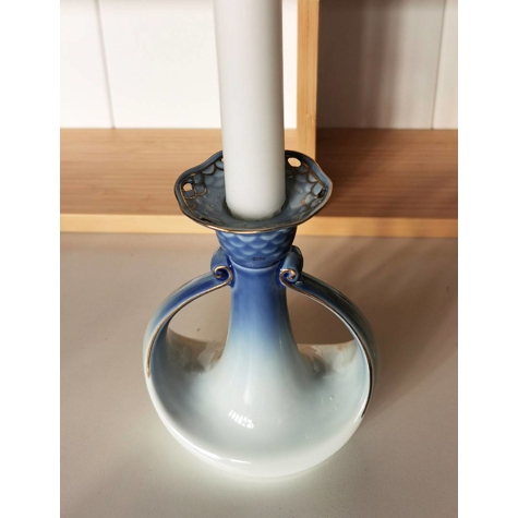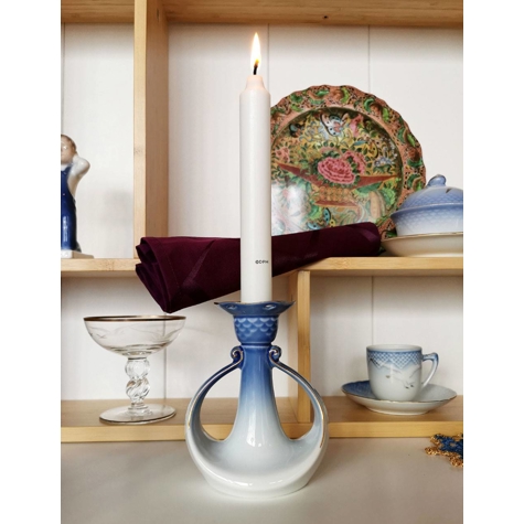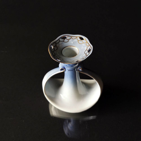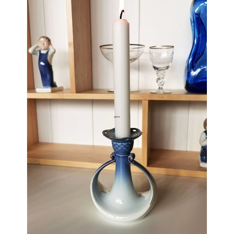Mågestel med guld uden måge, lysestage nr. 72 eller 503, Blå top/hvid bund
