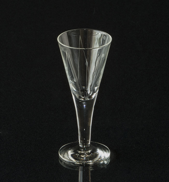 Holmegaard Clausholm er et højt fint glas med et zikzak mønster slebet i glasset.