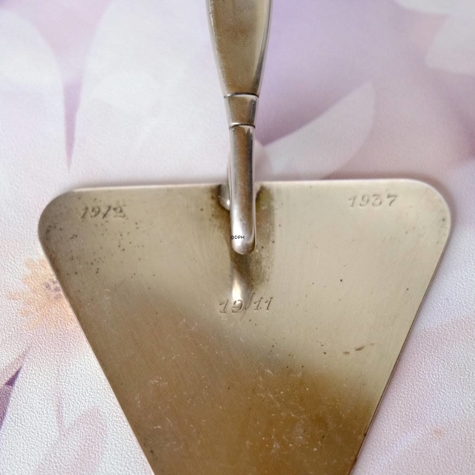 Tretårnet kagespade med følgende indgravering på spaden: 1912 - 19/11 - 1937