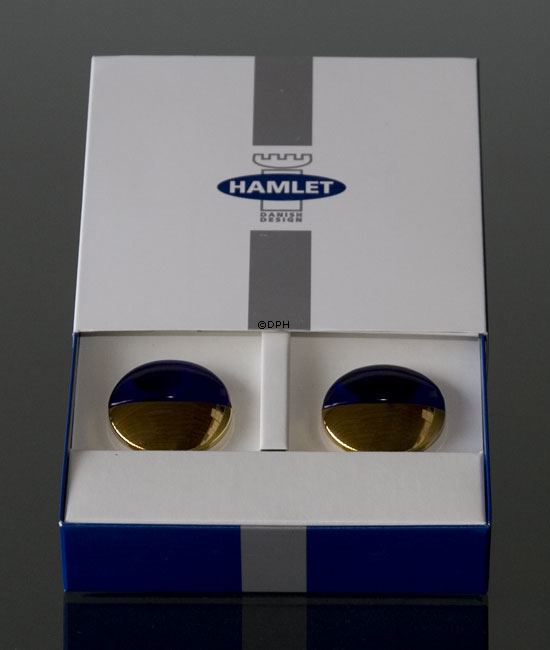 Hamlet Danish Design bordkortholder med 24 karats guldbelægning og blåt glas. Sæt af 2 stk. Design: Claus Asmussen
