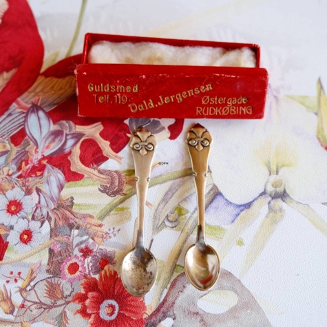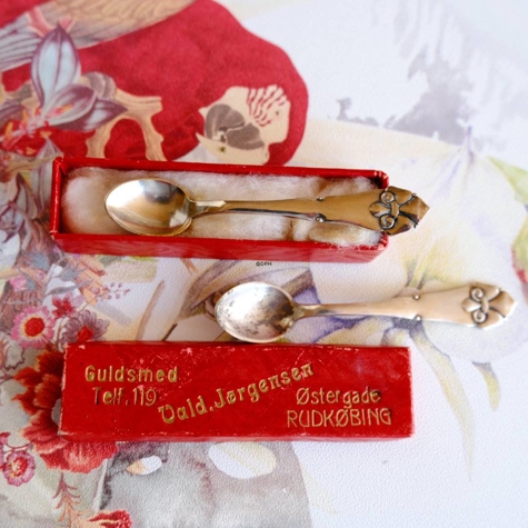 Sølvplet teskeer med forskellige blomste...