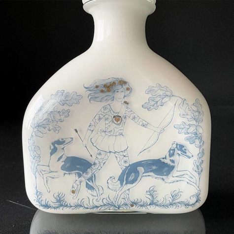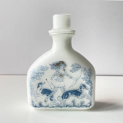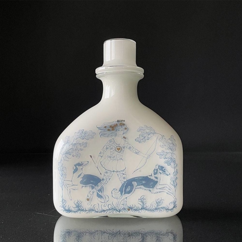 Holmegaard Karaffel, i serien Blue Magic, opal hvid med blå dekoration