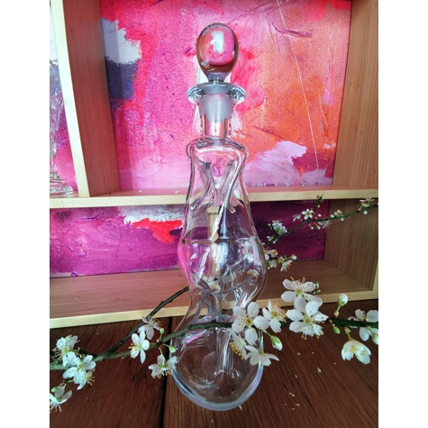 Når væsken forsøger at komme ud gennem de snævre søjler, er det luftmodstanden, der giver den klukkende lyd, når man skænker op. Den besynderligt udseende flaske er meget dekorativ og klukket er en ekstra charme.