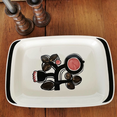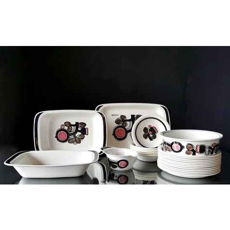 Håndmalet Elvira porcelænsstel fra Norge med juni motiv i form af rosafarvede blomster.