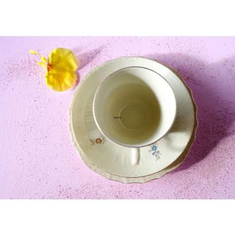Royal Copenhagen Frisenborg kaffekop med underkop Stellet er cremefarvet med guldkant og forskellige blomster.