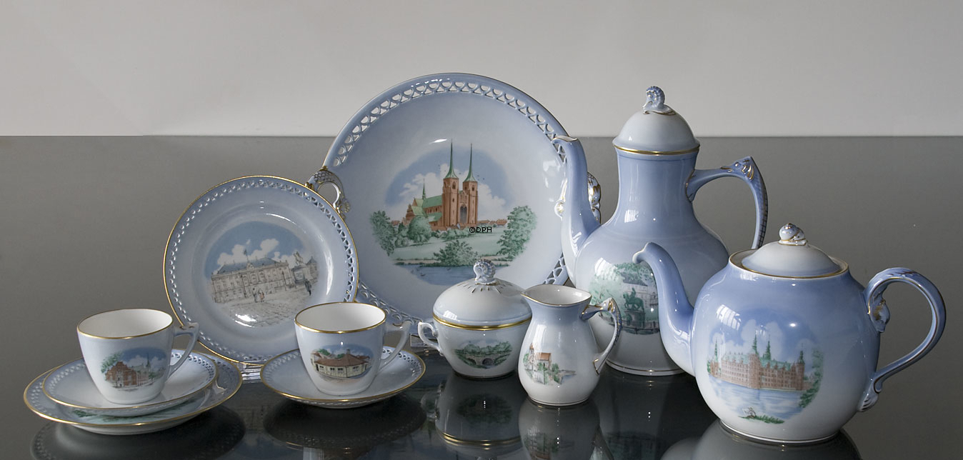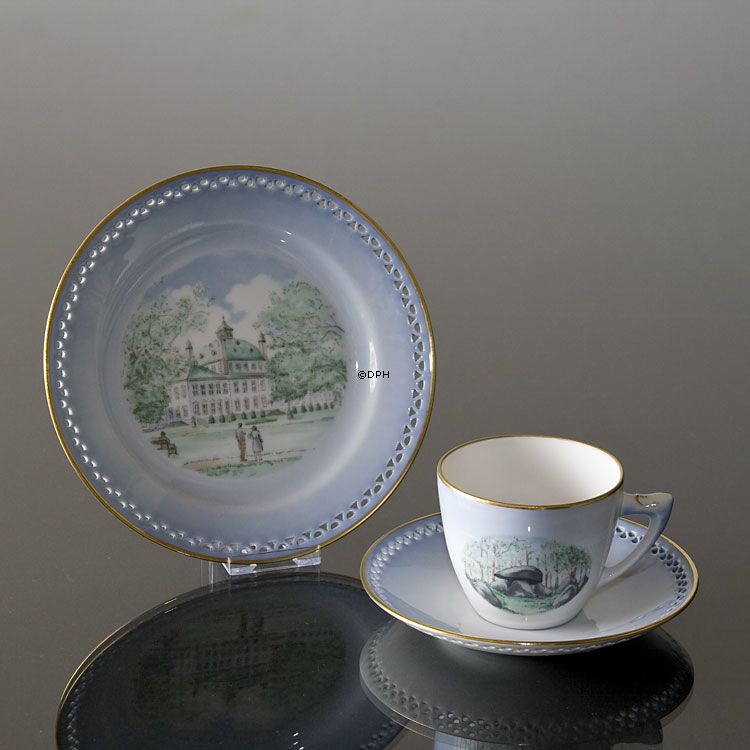 Dette er det fjerde sæt med motiv af Stendyssen ved Frejlev Skov (Lolland) på koppen og Fredensborg Slot på sidetallerknen. Danmarksstellet består af i alt 12 forskellige sæt samt kagefad, kaffekande, tekande, flødekande og sukkerskål.