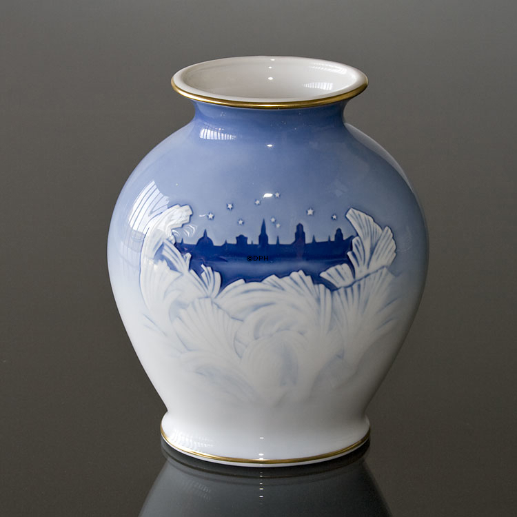 Bing & Grøndahl Jubilæumsvase Udgivelsesår: 1995 Motiv: Københavns Tårne Designer: Jørgen Nielsen Diameter: 12,5" - 32,5 cm