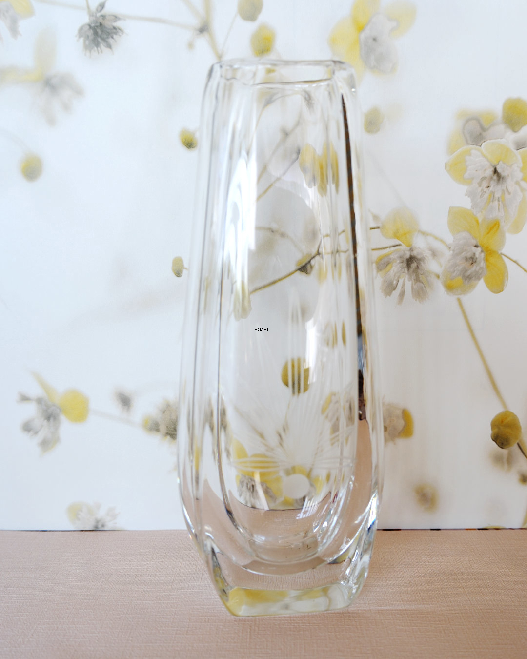 Glasvase med slibninger.