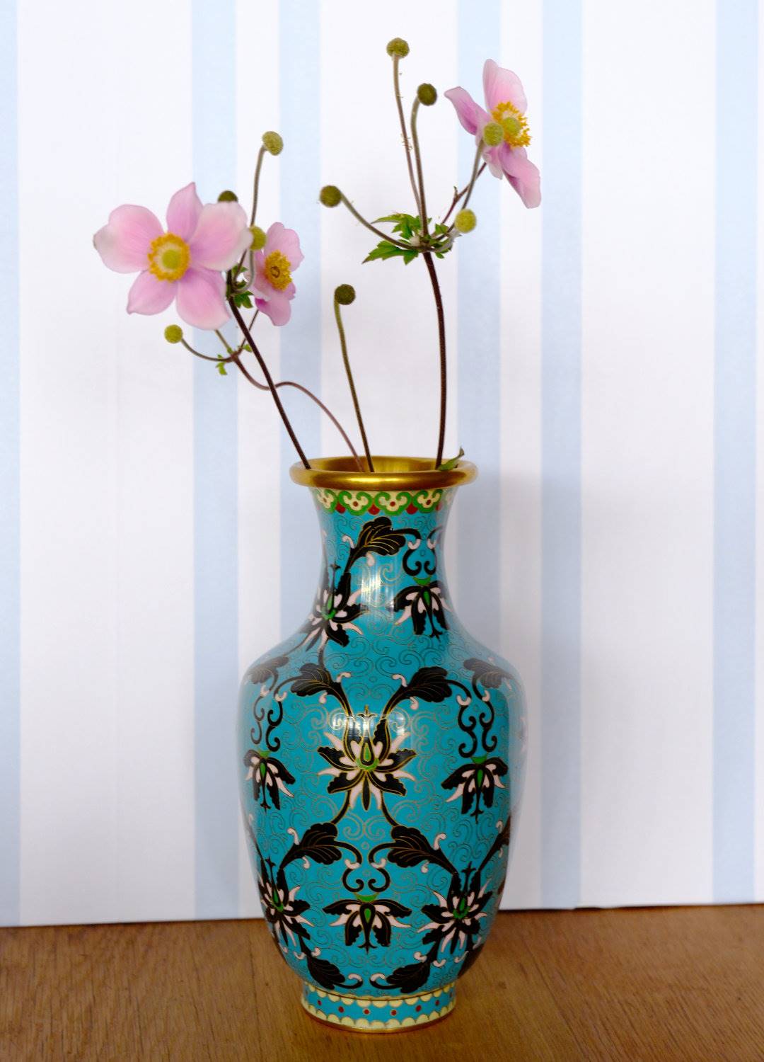 Kinesisk Cloisonne vase, lyseblå