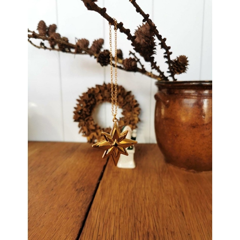 Georg Jensen Christmas Ornament 2024 med motiv af stjerne, designet af Sanne Lund Traberg. Finish: Zinklegering belagt med 18 kt. guld