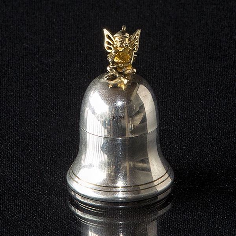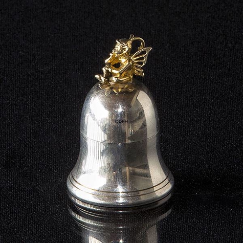Tandfe, udført som klokke med forgyldt tandfe på toppen. Tænderne kan lægges i rummet i klokken. Tegnet i 1920'erne, udført i sterling sølv og velegnet til gravering.