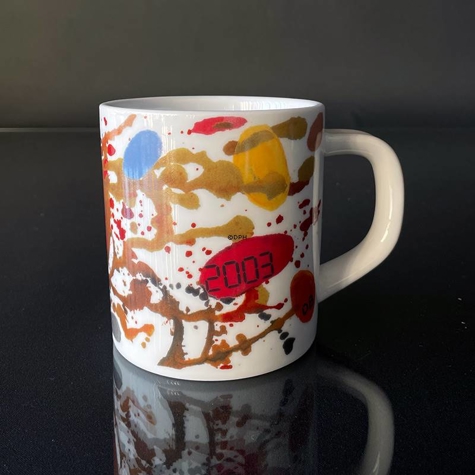 Royal Copenhagen, kgl, Årskrus 2003, stort, designed Doris Bloom, er et porcelænskrus med silketryk. 2003 Royal Copenhagen blev kun produceret i 2003. Det lille og det store årskrus udkom hvert år fra 1967 til og med 2014. De to krus havde samme motiv, men kunstnerne, som designede krusene har været mange, og skiftede fra år til år.
